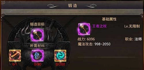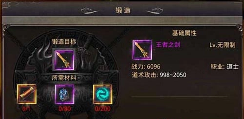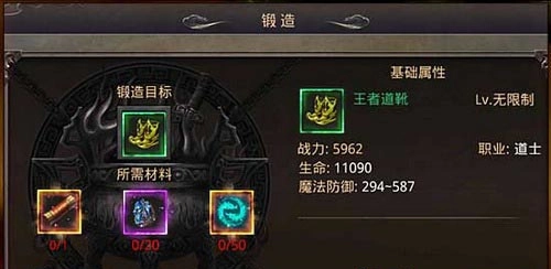 2、重铸:卧龙卷轴·王者*1+卧龙印记·王者*50+光芒道靴
