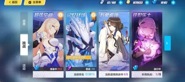7、我现在在终极区,所以我这里是超弦空间,高级区及以前应该是量子流形,这里统称为深渊。深渊每周有两次分别在周一和周五下午三点开启。每期深渊都会和不同的人一组,根据最后的分数进行排名并且分配奖励。深渊分为初级区中级区高级区和终极区,终极区这里先不讨论。除了终极区每个又都分为禁忌原罪苦痛红莲。越高奖励越好当然也会越难打,玩家会再七十级之后自动步入高级区。这里就不过多介绍,总之每周两次能打多少打多少。