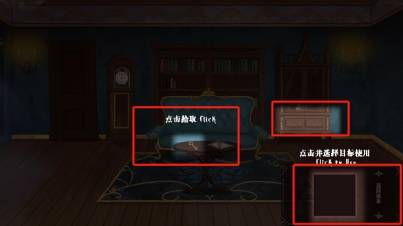 3、然后根据游戏的指引拾取钥匙并打开抽屉