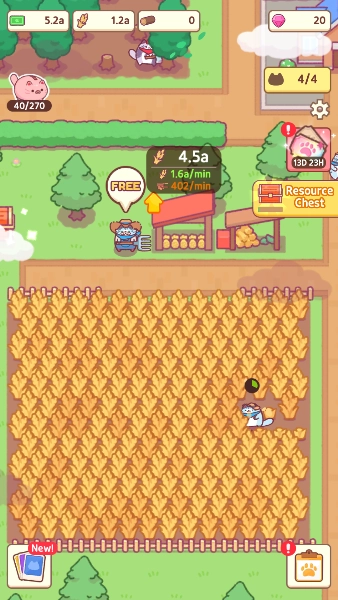 在猫镇山谷里,玩家将化身农场主,在这个遍布萌猫的小农场村落里,体味田园生活的恬淡与惬意。玩家能和一众灵动可爱的猫咪居民交流互动,借助开垦土地、栽种各种农作物来壮大自己的农场,打造出美丽又兴旺的家园。