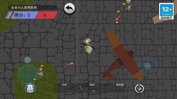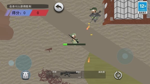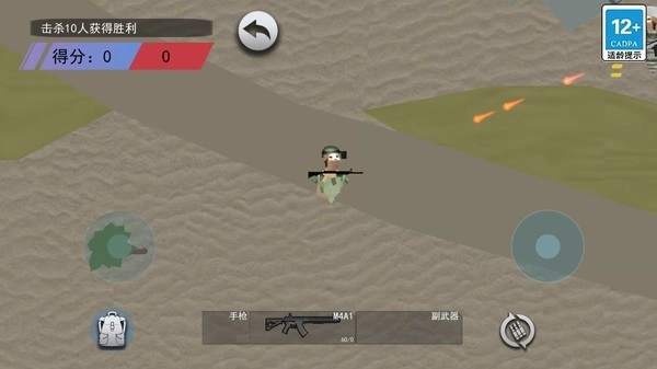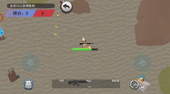 2、通过屏幕上给出三个闯关模式:描描突围、狗拘突围、描描逃生选择想要挑战的点击进入,使用屏幕上的操控按键来移动角色,发现敌人的位置瞄准射击