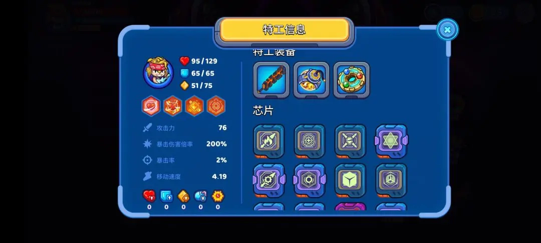 技巧二:使用掉血掉金币的芯片,通过自我中毒蹭伤并恢复黄条,实现永动效果。