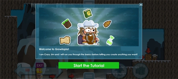 3、等待加载世界,点击Start the Tuforial开始游戏;
