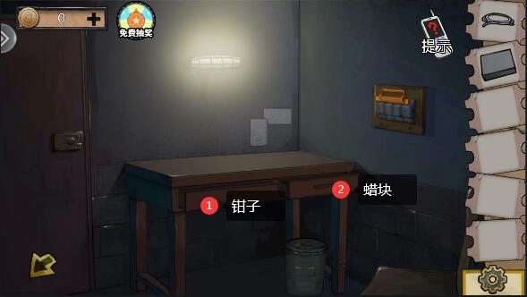 2、回到第一个关的保安室,用钥匙打开左边抽屉,获得半个钳子,右边抽屉获得蜡块;