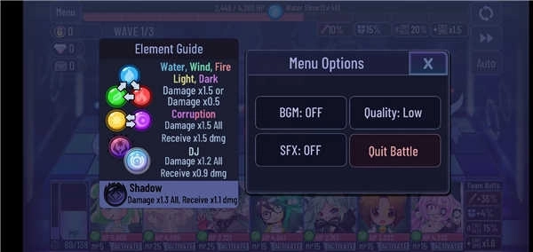水克制风,风克制火,火克制水;光与暗相互克制。当攻击方克制目标时,会造成1.5倍的伤害;若攻击方被目标克制,则只能打出0.5倍的输出。