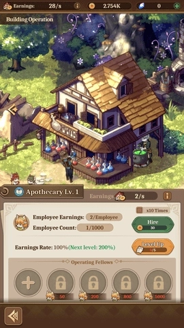 游戏过程中会碰到形形色色的NPC,他们能够加入玩家的队伍成为伙伴。这些伙伴并非在战斗时协助玩家,而是在村庄的各类建筑中充当“管理者”,提高建筑物的收益效率。