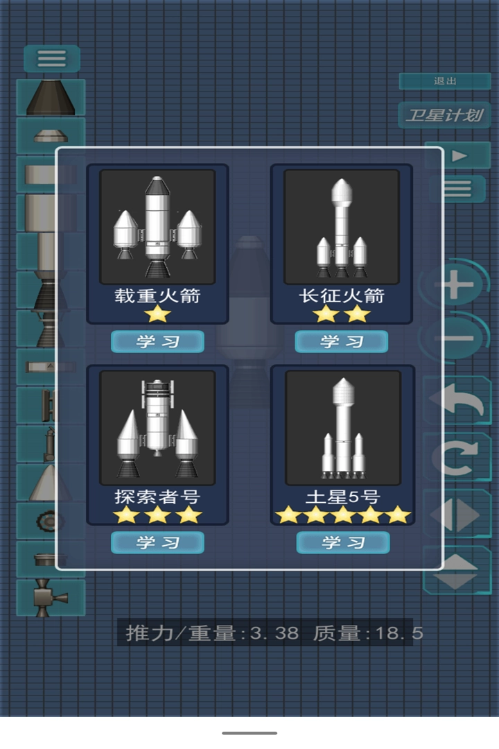 3、航天器模拟可以自由选择各种配件组装自己的火箭探索宇宙。