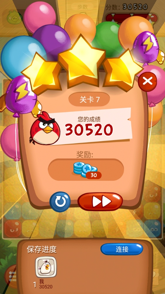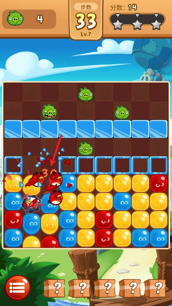 3、点击两个及以上的气球即可将其打破,解救对应小鸟。