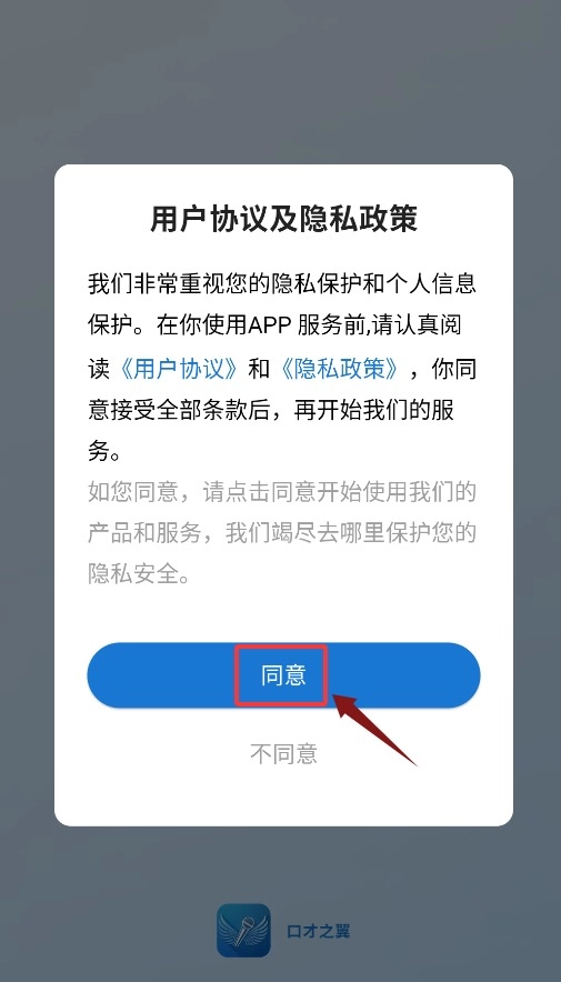 首次打开应用时,需点击同意协议与隐私政策,确认后才能进入应用。