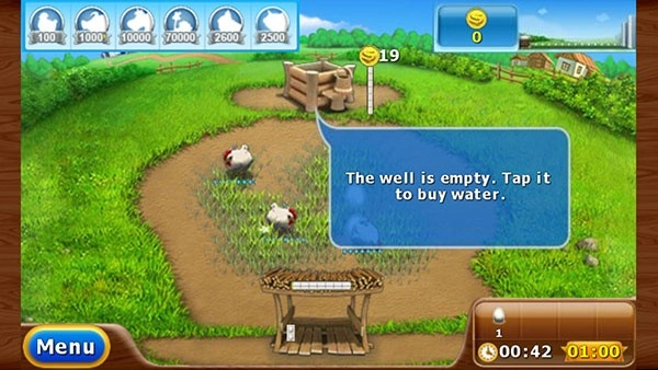 4、点击水井获取灌溉用水,加速牧草生长过程,但需消耗一定数量的硬币作为资源支出。
