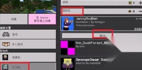 4、在我的包功能界面下即可看到刚刚导入的jennymod整合包,点击右侧的激活选项即可;