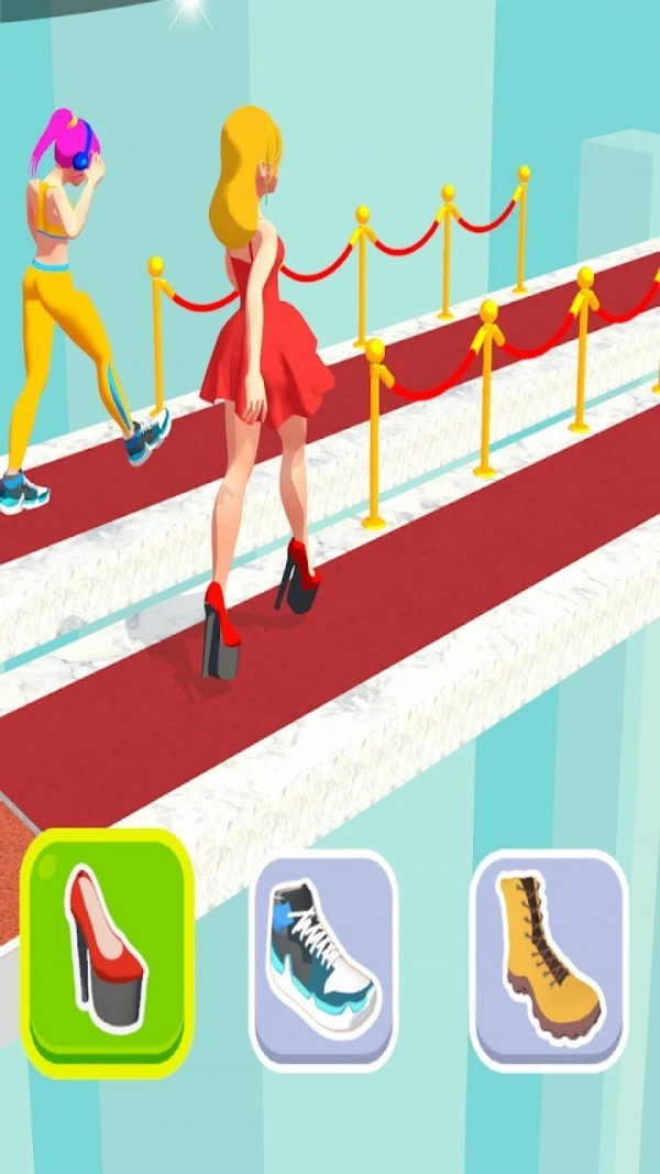 2、玩家可以根据关卡内的场地选择对应的鞋子,帮助角色获得更快的前进速度,从而赢得比赛的胜利。