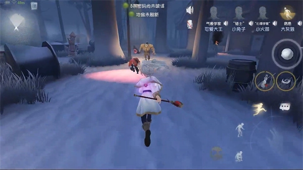 5、这个监管者靠近时,就会出现警戒,能够直接回头转一圈然后反向跑。这样可以让监管者错过攻击。