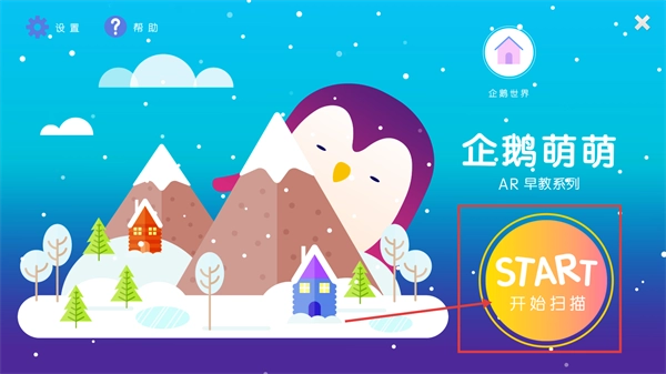 进入【企鹅萌萌-AR早教系列】后,建议先通过【设置】或【帮助】功能熟悉各项操作,之后再点击【START-开始扫描】开启AR互动体验。