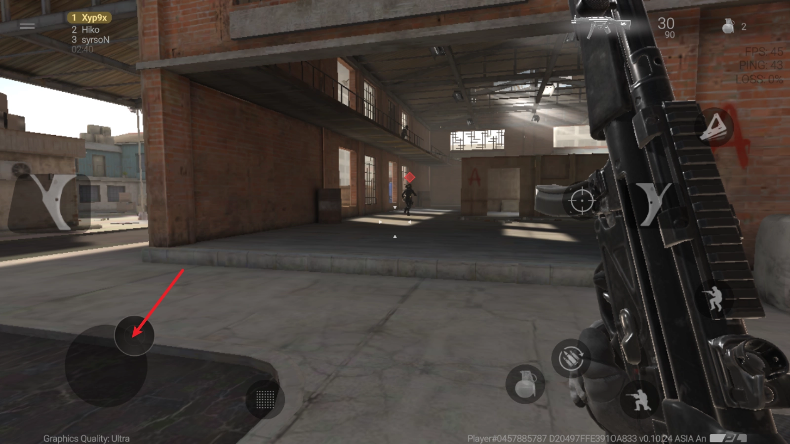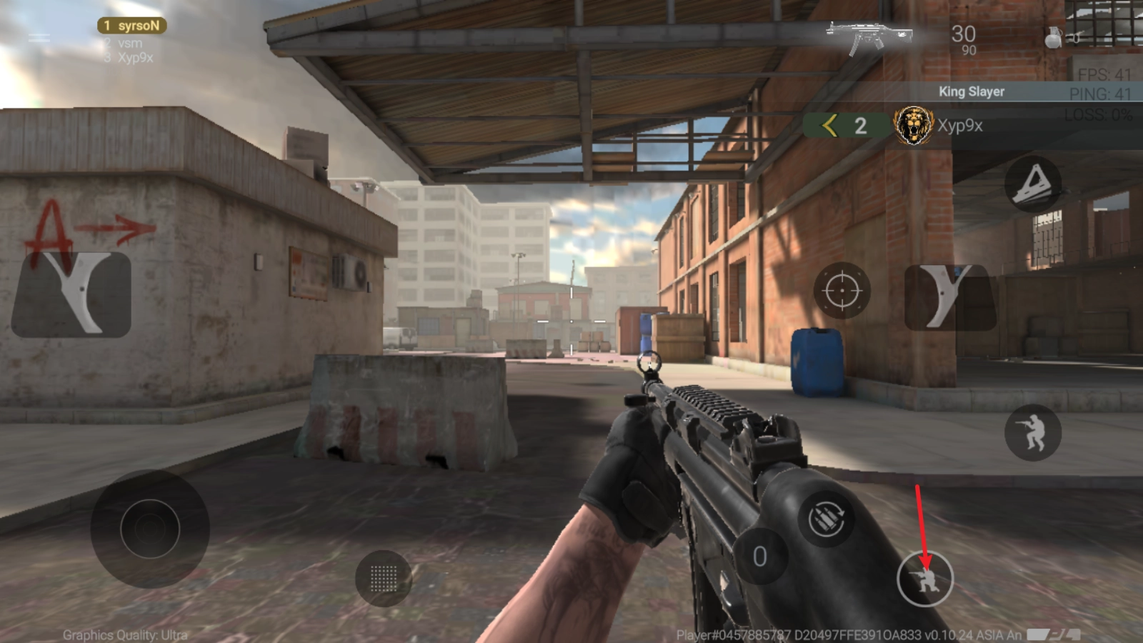 7、点击下方的蹲下按钮,可以让我们蹲下射击,减少后坐力影响。