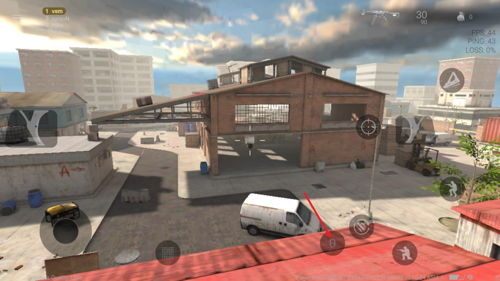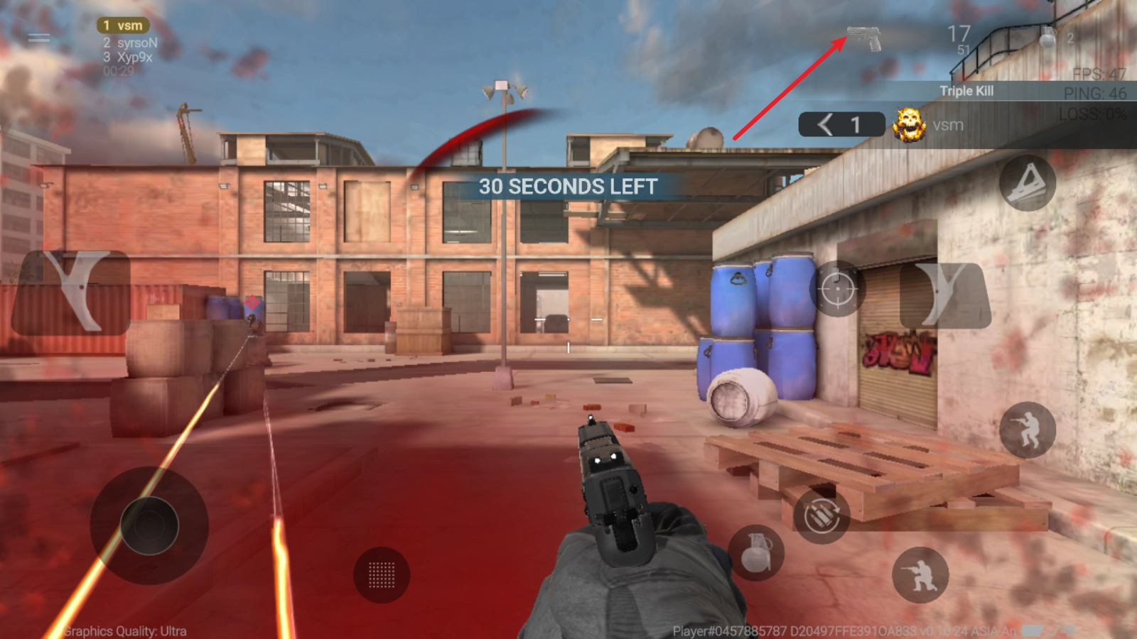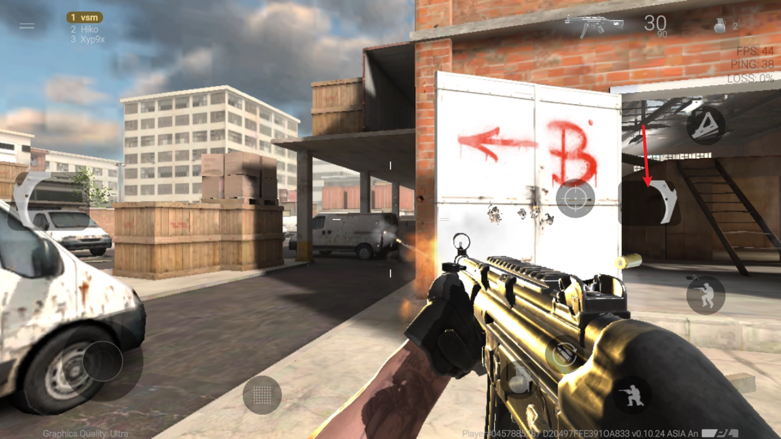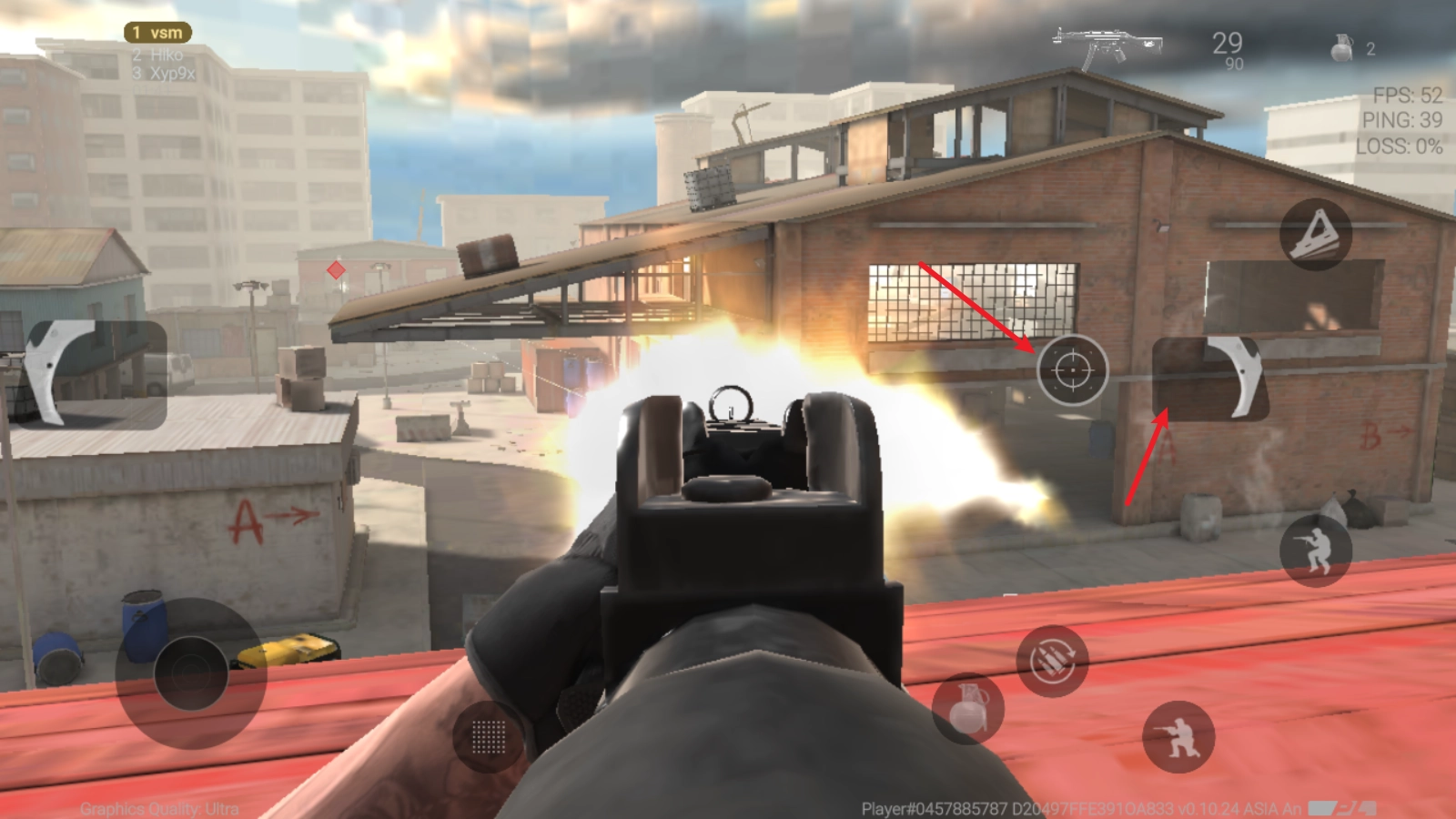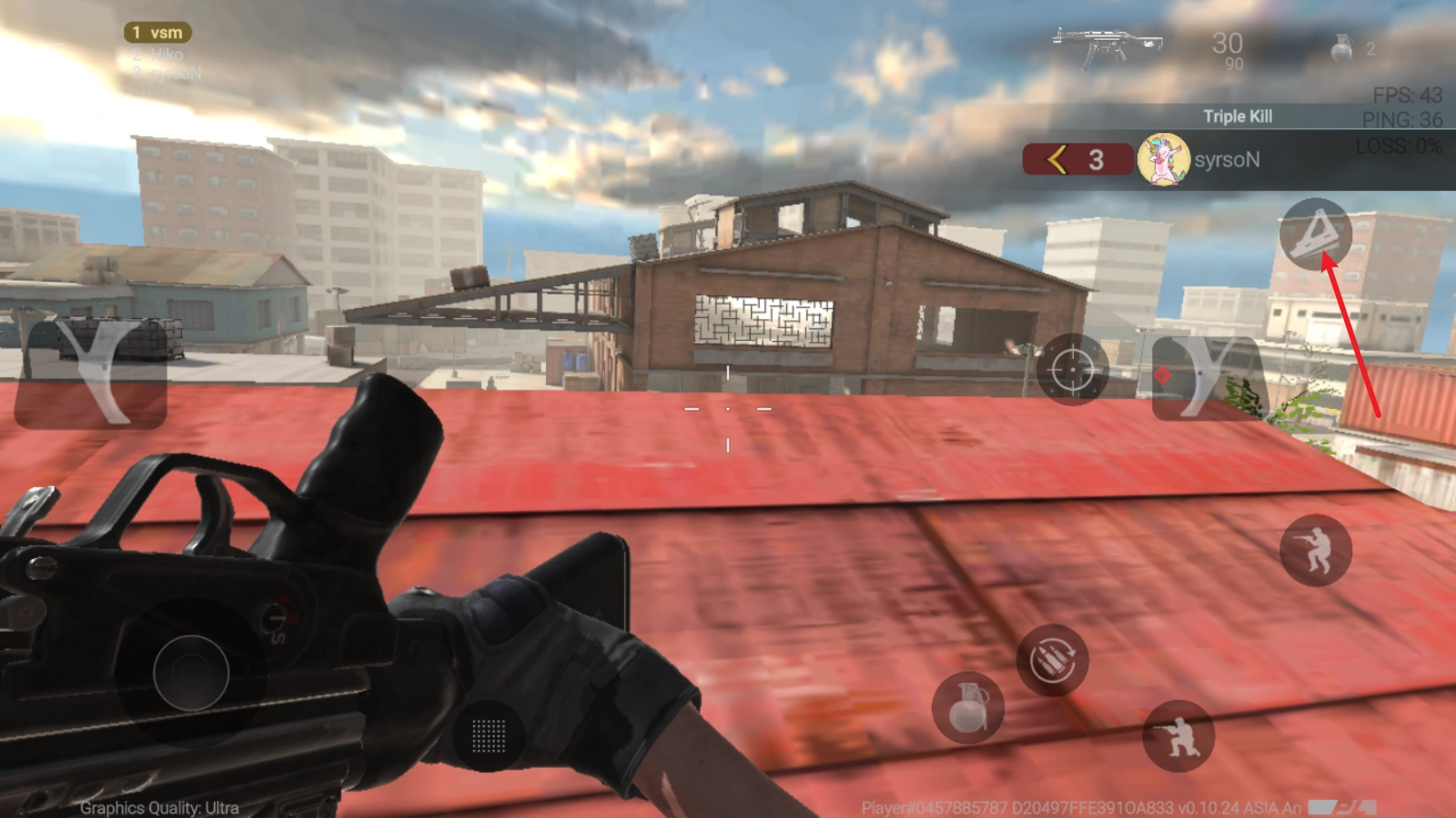 3、点击右侧箭头所指的按钮即可开枪。