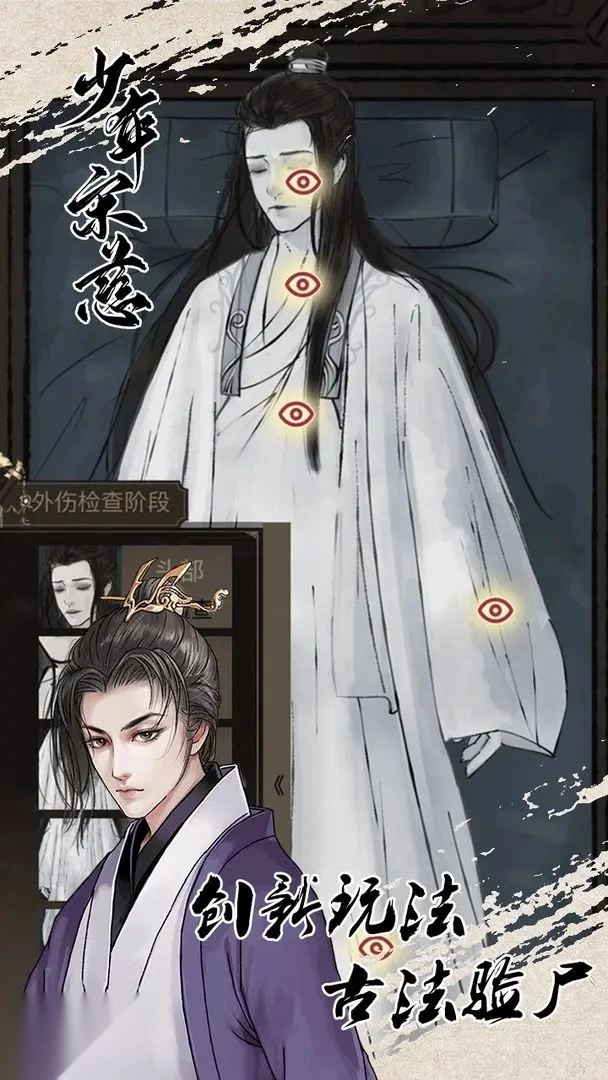 游戏整体呈现出浓郁的古风画面,中国风元素十分鲜明,游玩方式也相当简单,只需根据故事情节进行推理,然后点击选择你认为最合理的选项就行。和其他剧情文字类游戏不一样的是,这款游戏的每个章节都有不同的故事结局,毕竟每个章节都是独立的故事。玩家在这里不仅是技艺精湛的验尸官,还是敏锐过人的侦探。