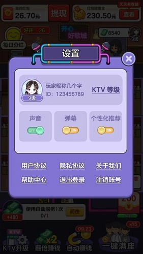 4、红包奖励:完成任务或目标可领红包,用来购买道具、解锁新内容,助力歌厅快速升级。