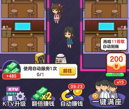 2、升级与扩张:通过提升歌厅等级,解锁新装修、设备和包厢,靠顾客好评积累口碑,吸引更多客人光顾。