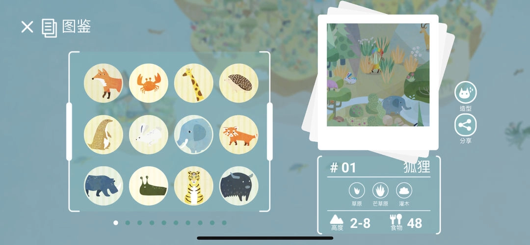 需要一定数量的森林覆盖率。至少森林里的动物都要开启图鉴。