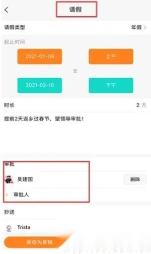 2. 审批效率高:请假、外出、补卡、加班等申请一键完成,审批提醒通过微信推送给审批人,大大提高了审批效率,无需繁琐沟通。