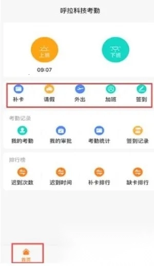 3. 打开应用就能进行考勤打卡、外出签到等操作,一键申请超便捷。