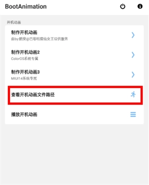 1、首先返回首页,点击查看开机动画文件路径这个功能,如下图所示。