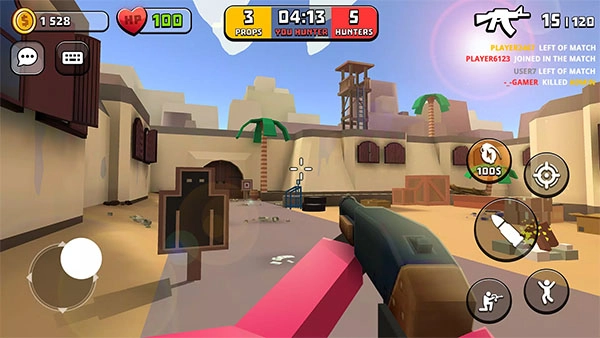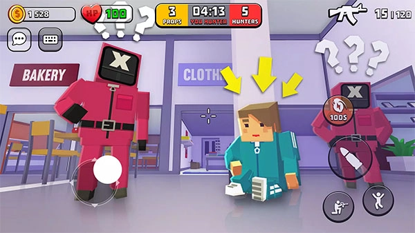 游戏过程中,选择躲藏者时,玩家将变身为地图中的任意物品,需发挥创意挑选隐蔽位置,通过与场景融合躲避追捕;扮演追捕者则需在限定时间内搜寻并消灭所有躲藏者,利用射击技能摧毁可疑物品。。