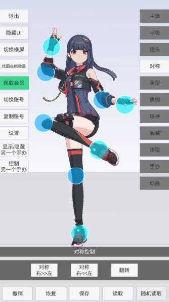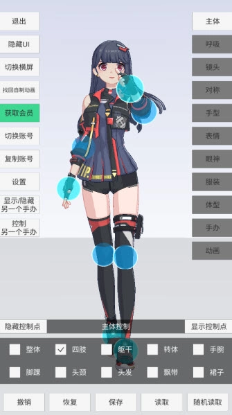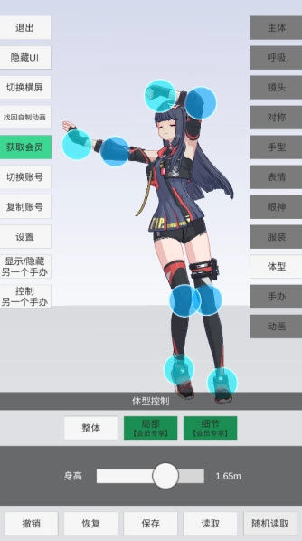 1、详细丰富的模型调节,各个部位与与动作都可以进行调节。