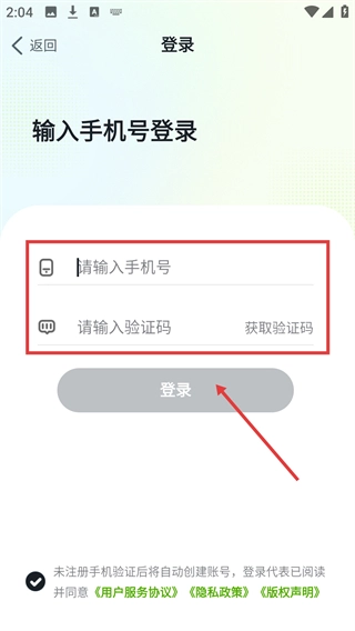 4、在【输入手机号登录】页面,填【请输入手机号】和【请输入验证码】,勾选协议后点击【登录】完成操作。