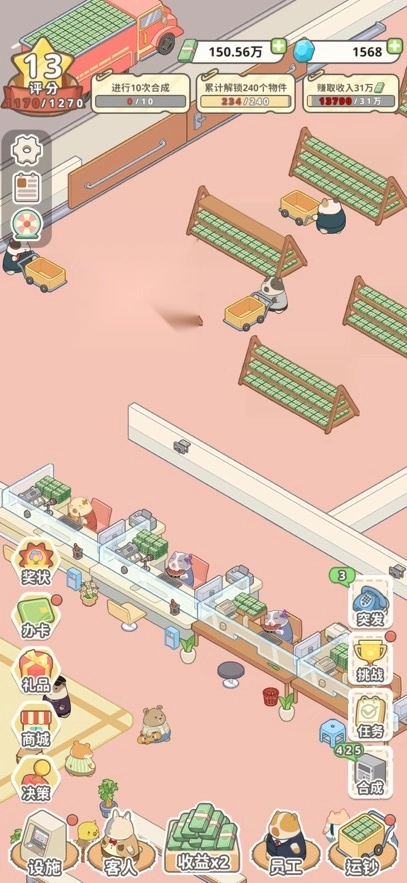 4. 随着钱庄规模的扩大,招募更多动物员工,并通过提升员工星级来进一步提升工作效率。