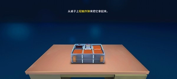4、进入游戏如图,首先从桌子上轻触炸弹来把它拿起来;