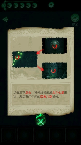 3、点击三下龙头后可以激活石门中间的四象八卦机关。