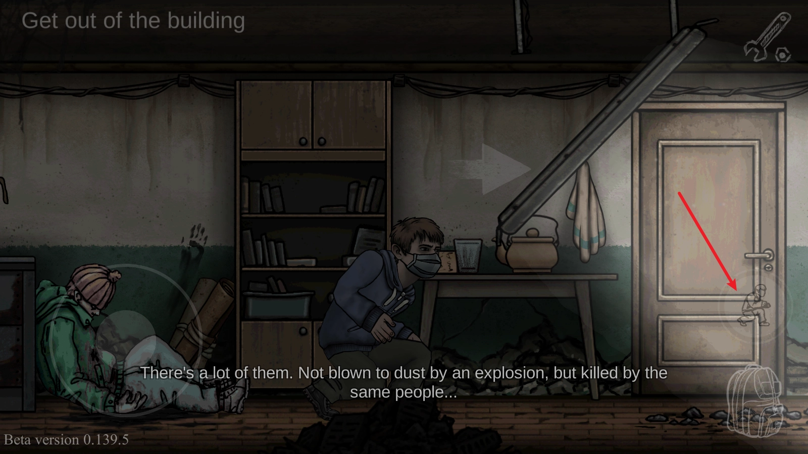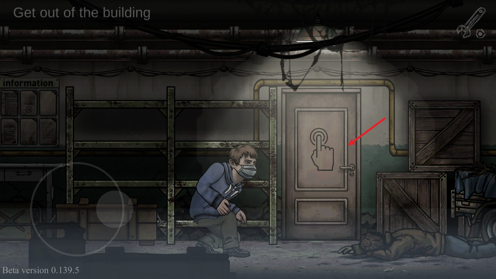 2、根据任务提示我们来到了避难所,由于是偷偷进入的,需要躲避巡逻兵,场景中有一些物品可以藏身,例如这里点击即可进去,躲避巡逻的搜查。
