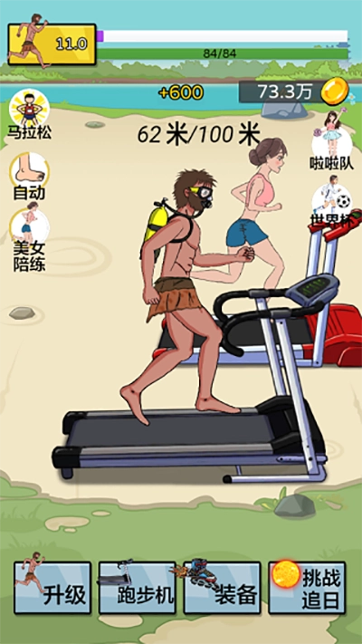 4.玩家们还能够通过跑步机来提升自身的状态和速度,以此来挑战自我以及金币的最高奖励。