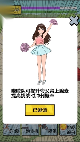 2.随着游戏的进展,还可以邀请到美女陪练,从而让夸父肾上腺素直接爆发,能够让跑步速度直接翻倍,奖励也是一样。