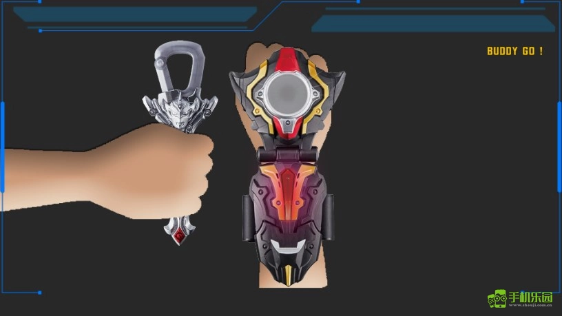 把光辉钥匙与泰迦火花连接起来就能释放力量,不过这所谓的“释放力量”其实就是添加特效。原本的设定是“把光辉之力存于心中”,实际上这正是变身前的最后一段特效。此时光辉钥匙会完全展开,能看到它金色的正面,十分美观。与此同时,还会有金色的力量特效注入泰迦火花。