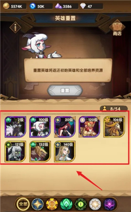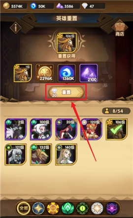 3、然后点击【英雄重置】。