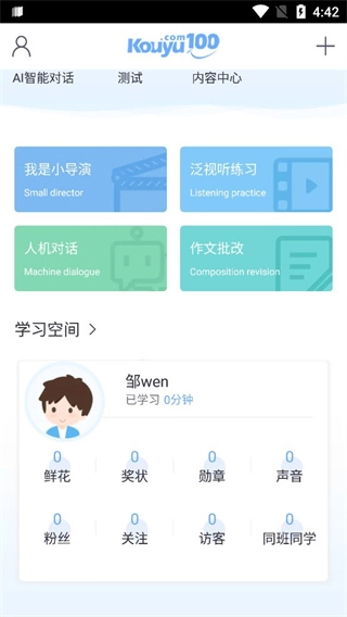 1、首先我们进入口语100最新版当中,往下滑动进入“学习空间”;