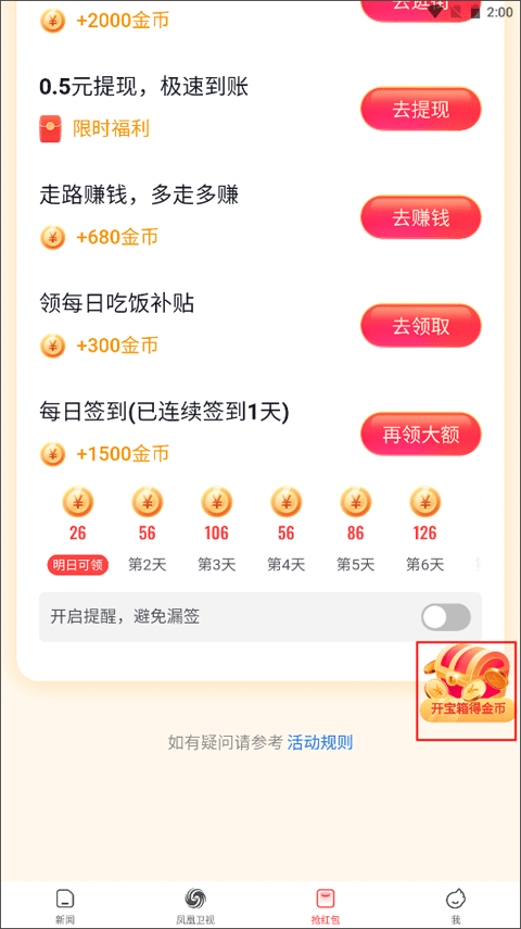 (3)每天五篇新闻资讯就可以获得20个金币。