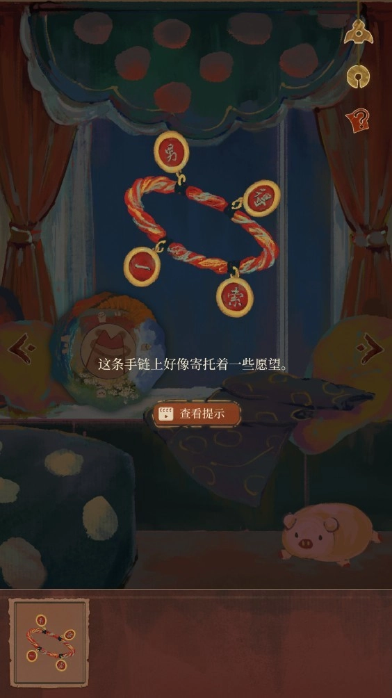 5、点击手链,修复手链,将“索”“得”“男”按顺序摆好“一索得男”,就能得到完整的手链。