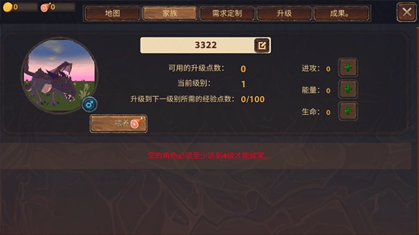 5、龙的每一次行动都会消耗精力,左上角能看到能量相关信息,红色条代表健康值,蓝色条代表能量值,休息一会儿后能量会自动恢复。