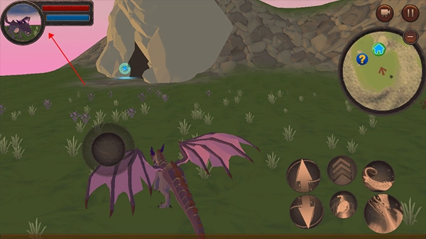 3、进入这个世界后,左下角可操控龙自由移动,右下角设有部分技能按钮,涵盖近战、远程、加速、飞翔等功能。其中加速需与左下角的移动操作配合使用,这样龙就能更快地移动。