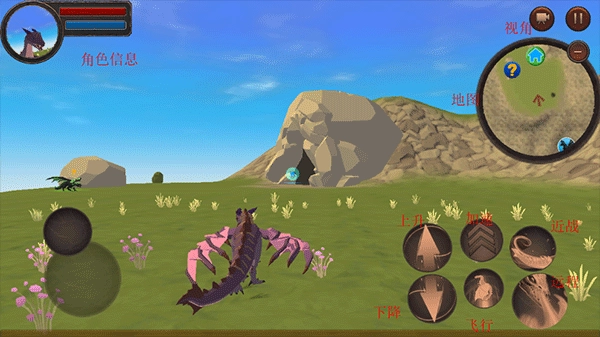 4、上升与降落操作用于控制龙起飞后的飞行方向,右上角设有地图,能显示当前自身位置及周边环境提示,其中房子标识代表自己的家。