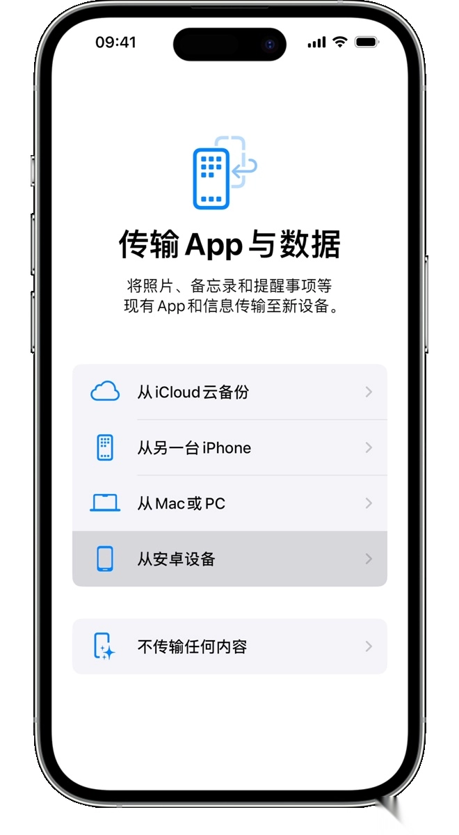 轻点“从安卓设备转移数据”