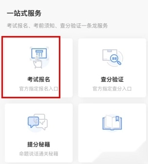 1、进入首页后,点击“考试报名”选项。