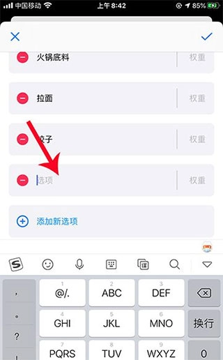 在新选项里输入添加内容,输入内容后,点击对勾,观看五秒视频,点击X号退出;