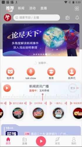 3、点击直播界面可看到热门主播与推荐电台。