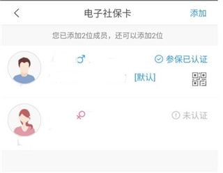 5、我们点击【电子社保卡】查看社保卡。这里一共可以添加4位成员。我已经添加了两个。我们对第二个进行认证。