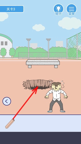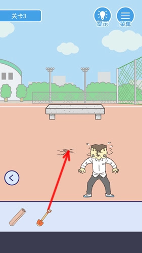来到右侧区域,按住道具栏中的铲子,拖到地上裂缝处,可以挖出一个大坑。